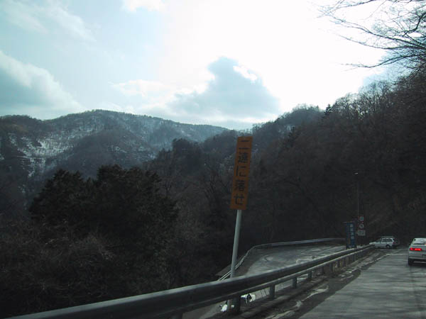 日光いろは坂で下りの道にある看板。