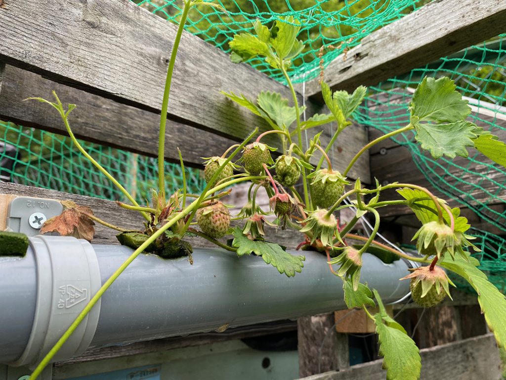 水耕栽培でのイチゴ、時期が遅かったので、期待してなかったけど、実がついてたy(^ー^)y