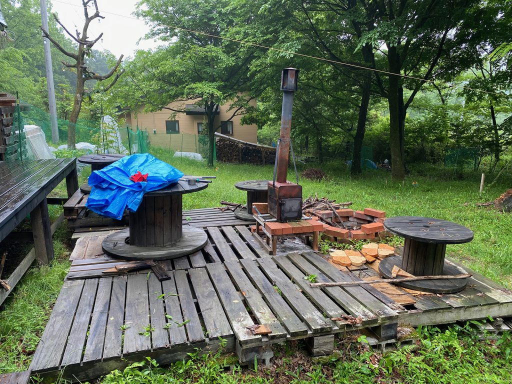 突然の雨も上がって、ちょい時間を持て余し、デッキの囲いを外した。。