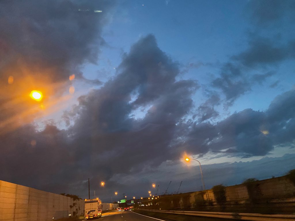 高速走行中、ヤバそうな暗い雲__、(_ _;;)