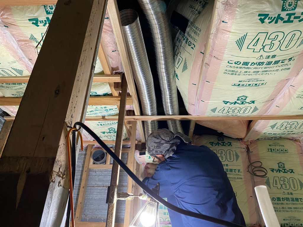 ダクトホースを取り付け__、再度、断熱材を貼り直してました( ̄- ̄;)ゞ