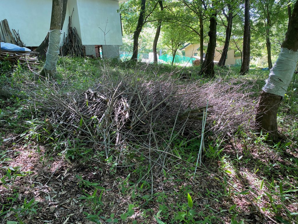 電柱の周りのを切り落とした枝、