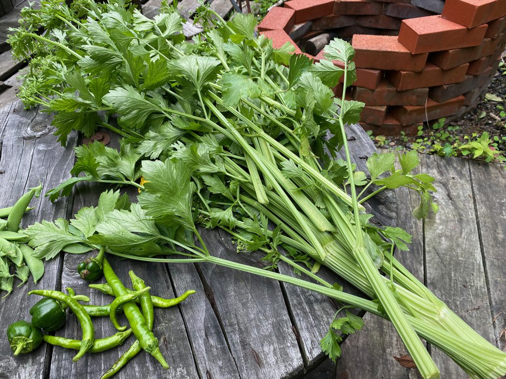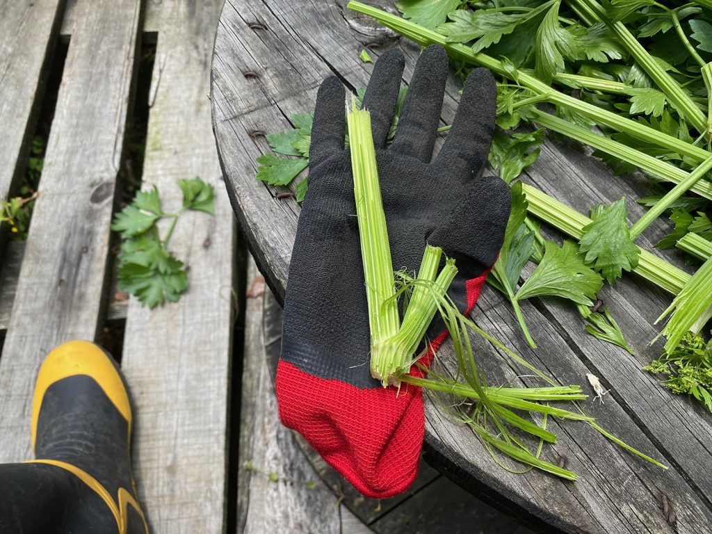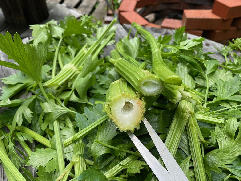 朝イチで、収穫します┌┤´д`├┘セロリ、、伸びすぎて,,,