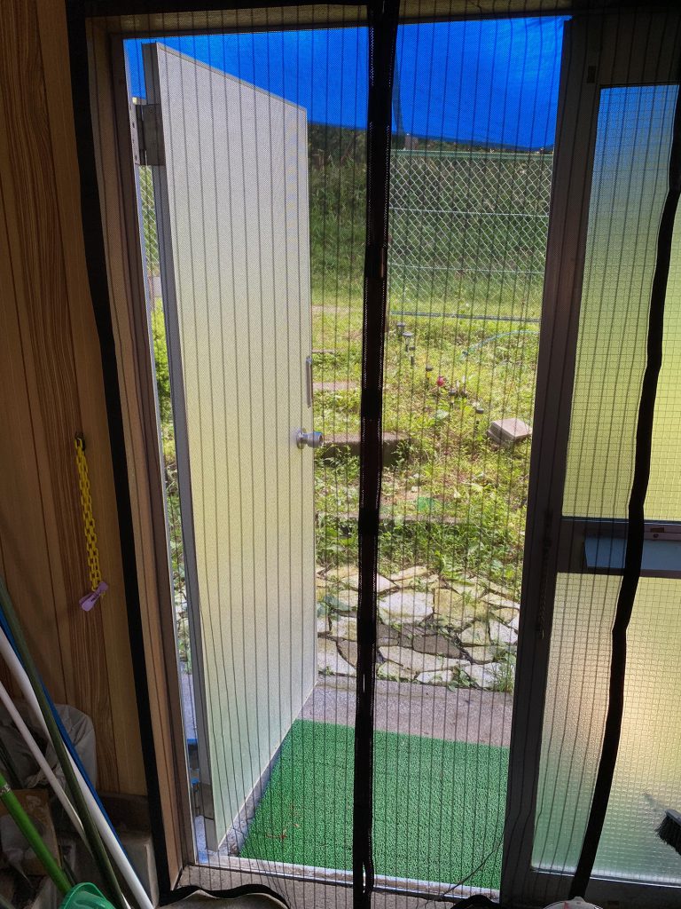 一段落したのか、これを取り付けてた!(^^)マグネット式網戸。