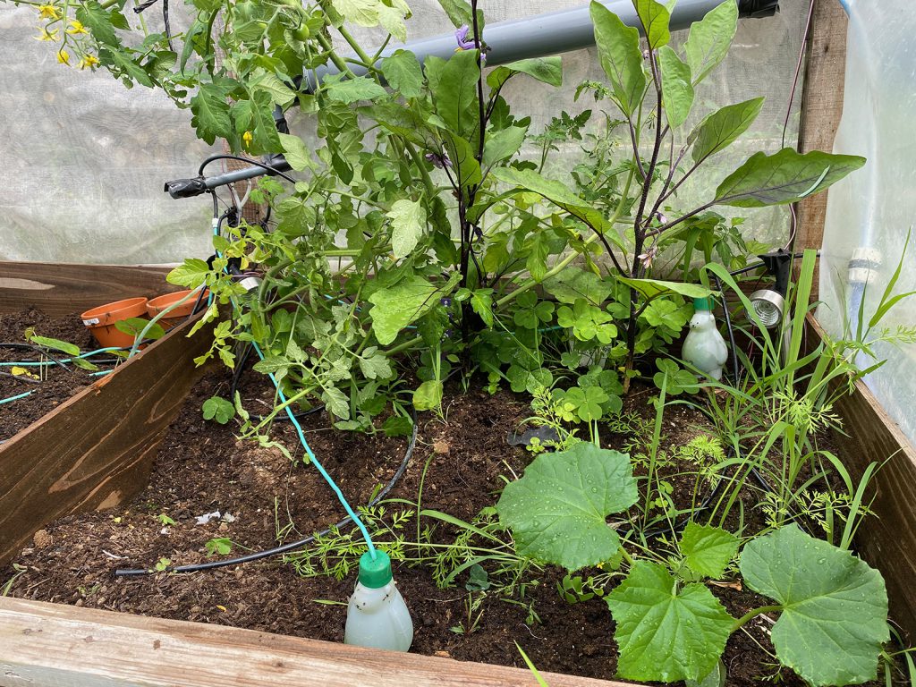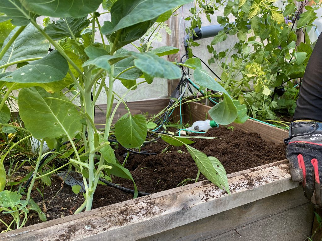 ビニールハウスの右側だけ残して、手前のキュウリを新たに。。