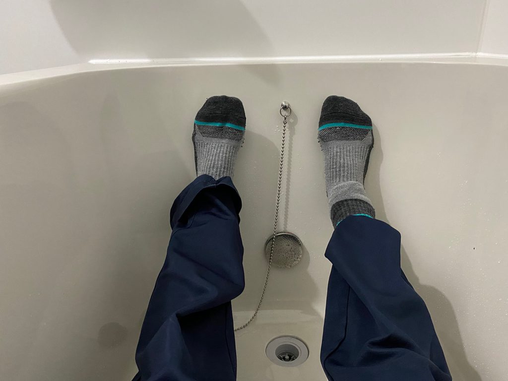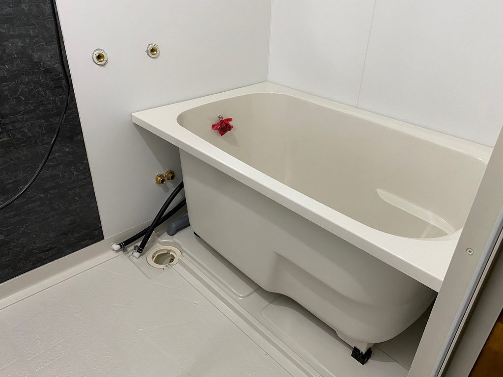 バスタブを仮設置してみた__、で、漏れチェック、、、