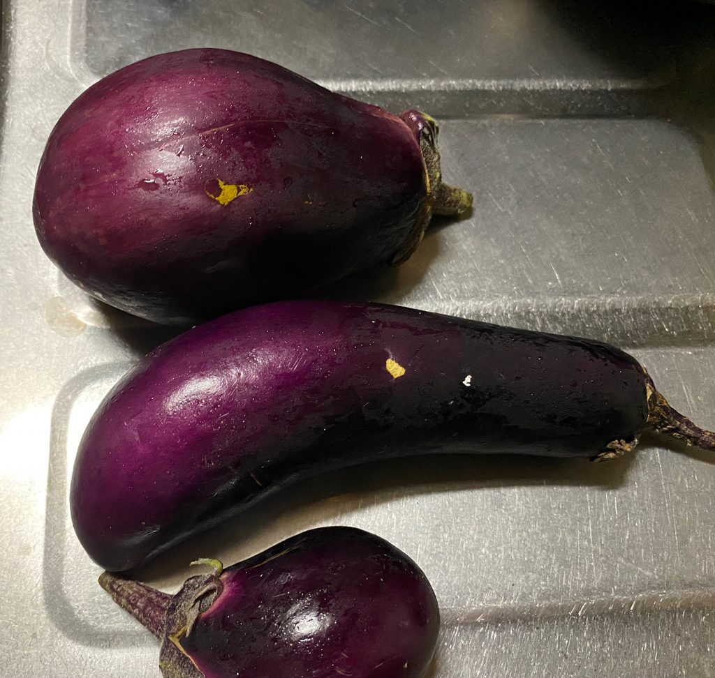 朝採りナス(上と下)__、上、丸々と太ってました(^∇^)/