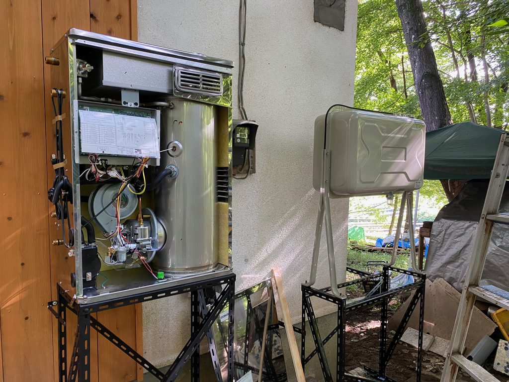 とりあえず、給湯機とタンクを設置できたことにふぅ〜デス٩(๑❛ᴗ❛๑)۶