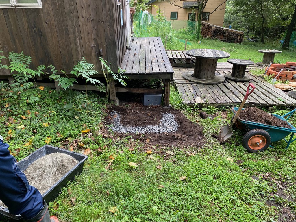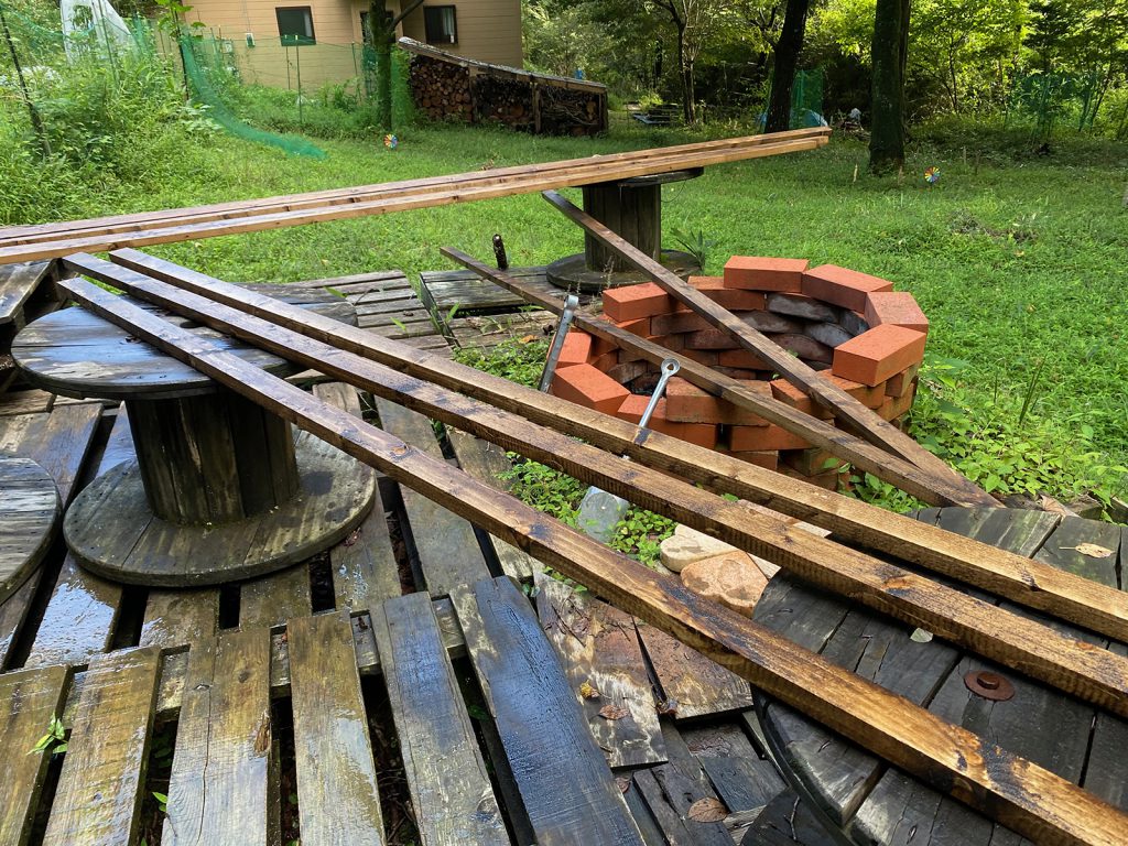角材に防腐剤を。。