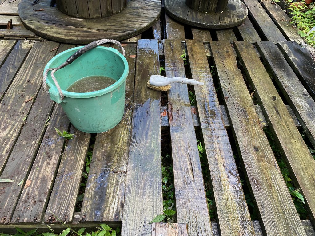 なので、デッキのコケ・滑りを洗い落とし__、