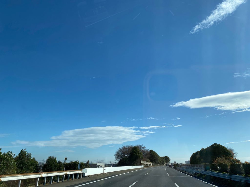飛行船のような雲、、浅間山、またまたうっすら雪化粧してる。。