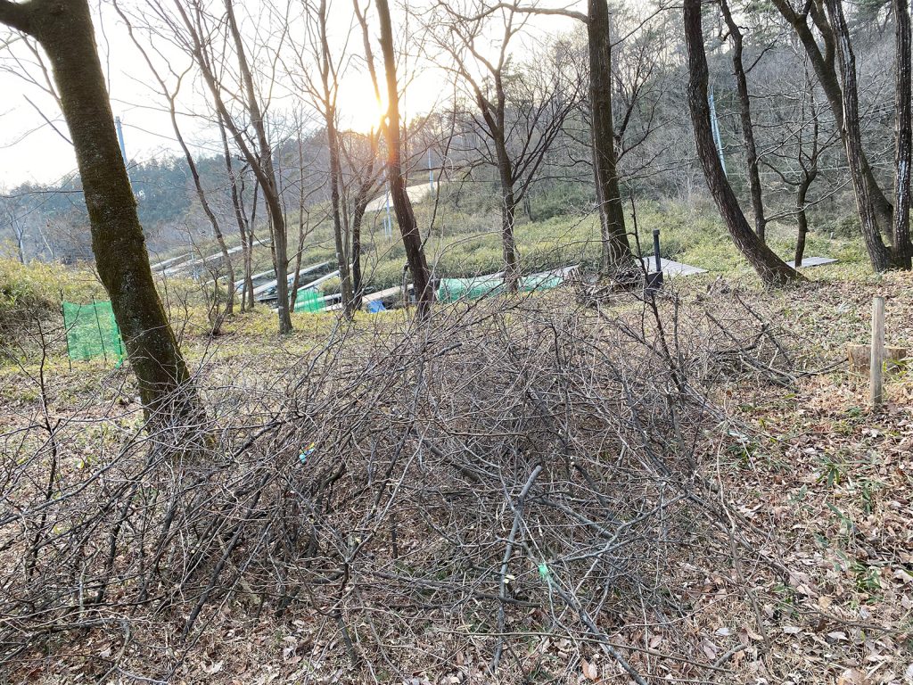 あちこちの枝も折れてて、回収したら、解体したような山です(-。-;;)