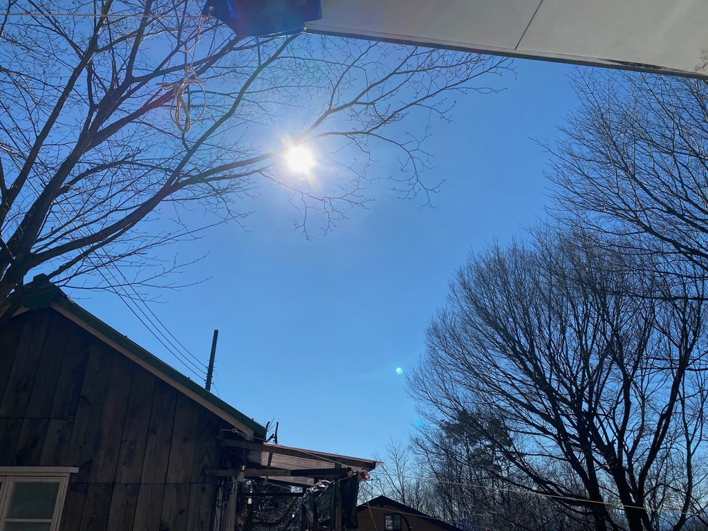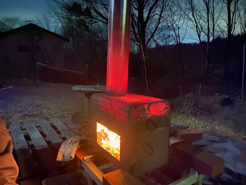 冬の屋外、風がないとほんとホッとする。。だからって、またまた燃すぎだよ((^┰^))ゞ