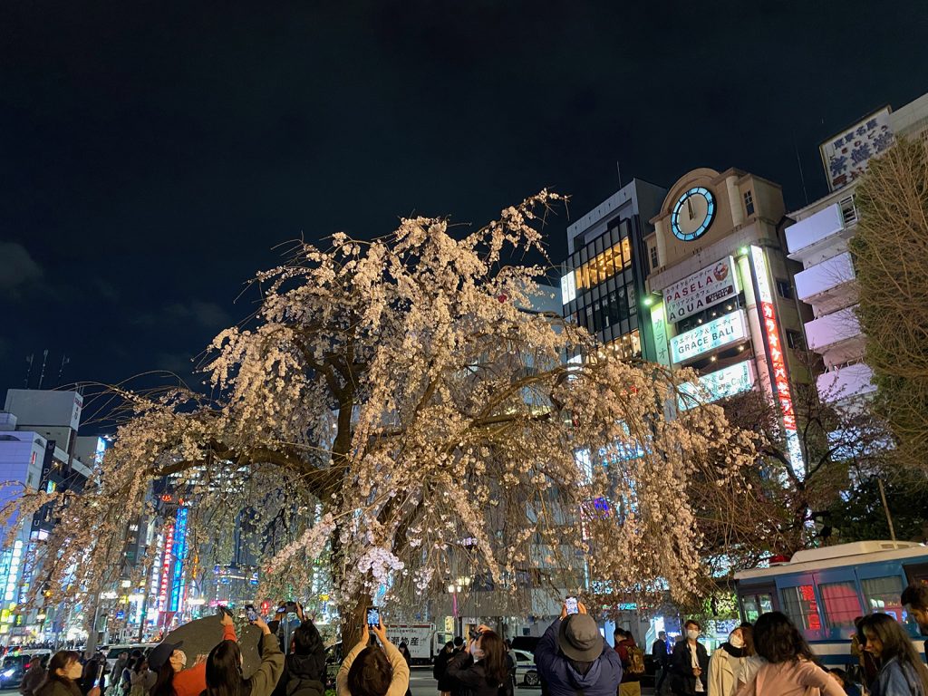 カエルの噴水前の桜