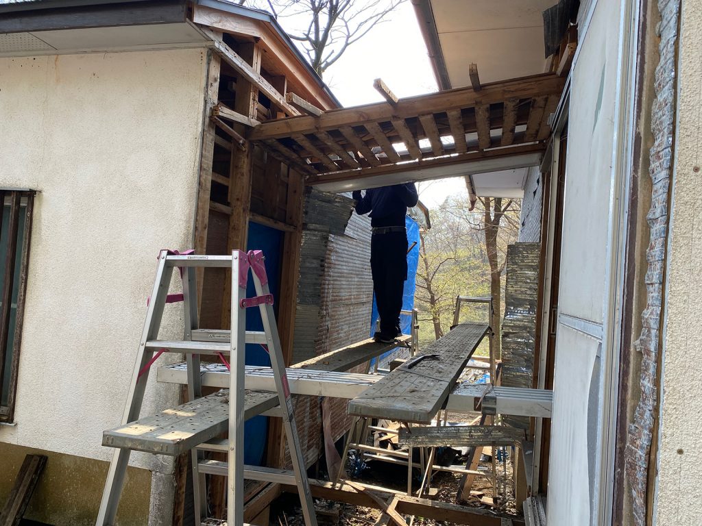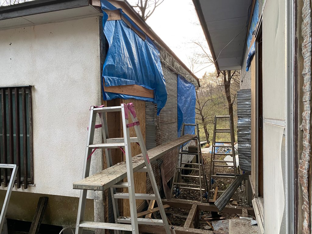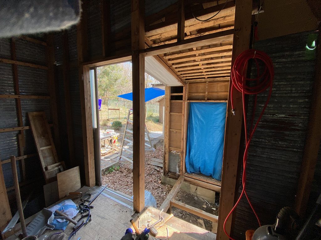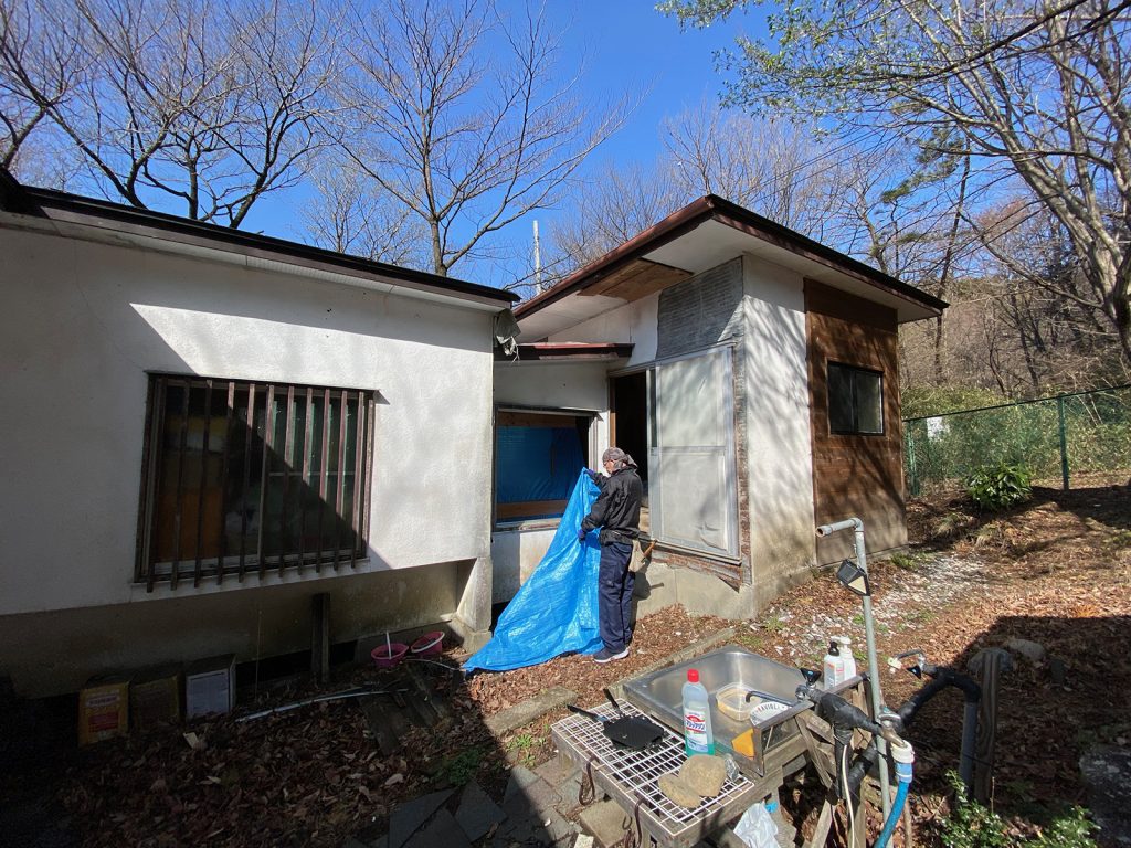 掃除して、柱の下に防腐剤塗って、柱の補修、廃材片し、、、、諸々。。