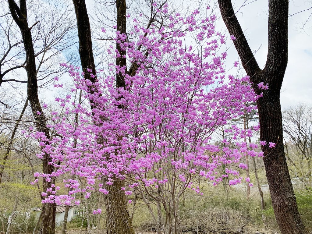 ご近所さんのアカヤシオ 満開です//。