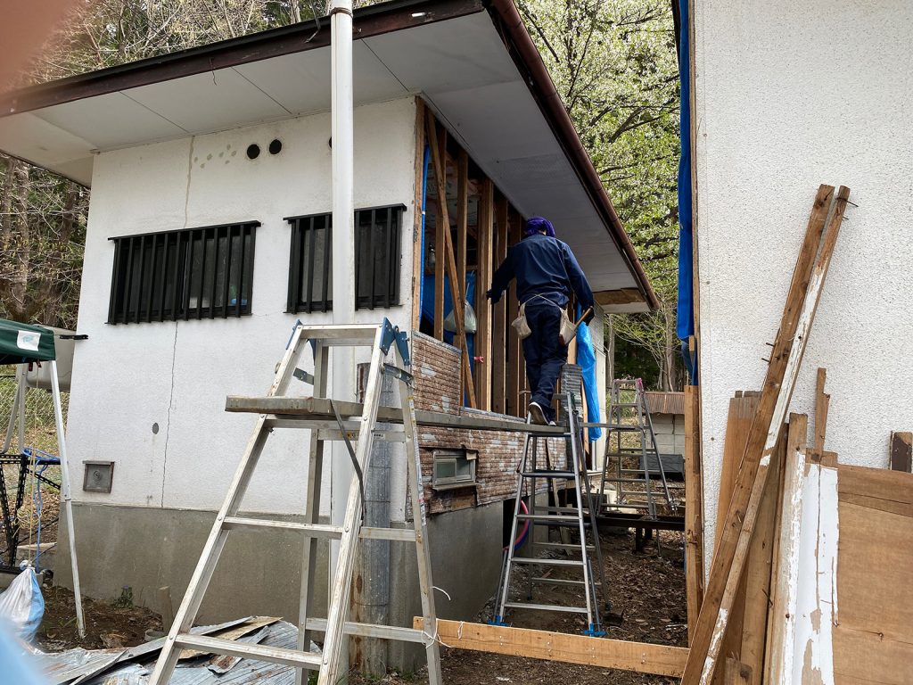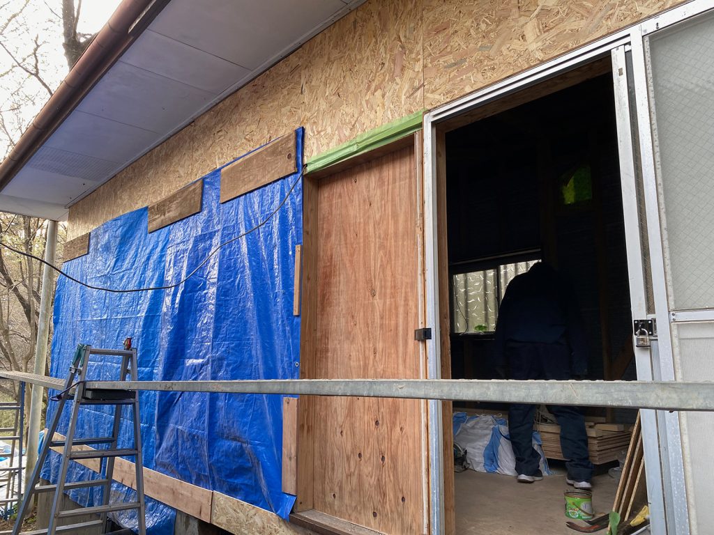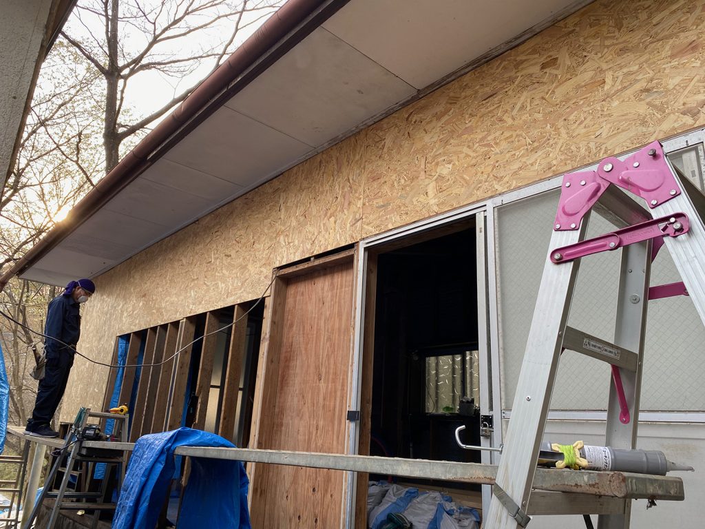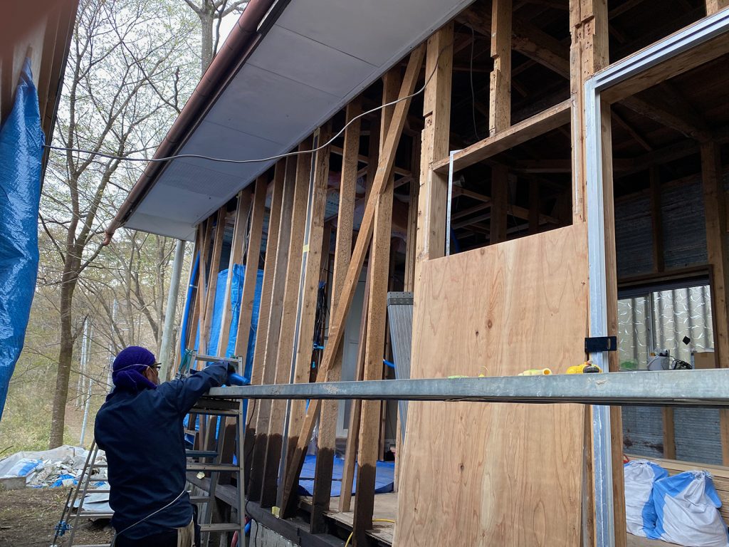 今日は、反対側のトタンを剥がしてます(^_^;)