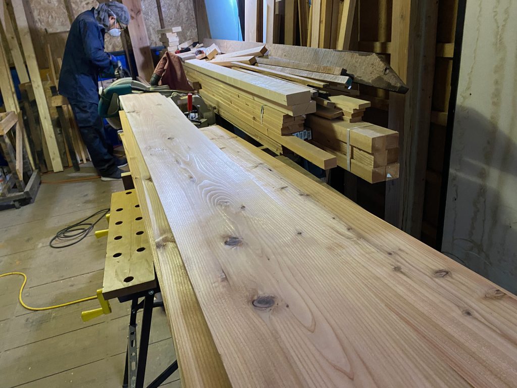 なので、野地板のカンナがけして、次の下準備してます。。(* ̄∇ ̄)/