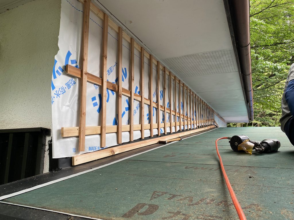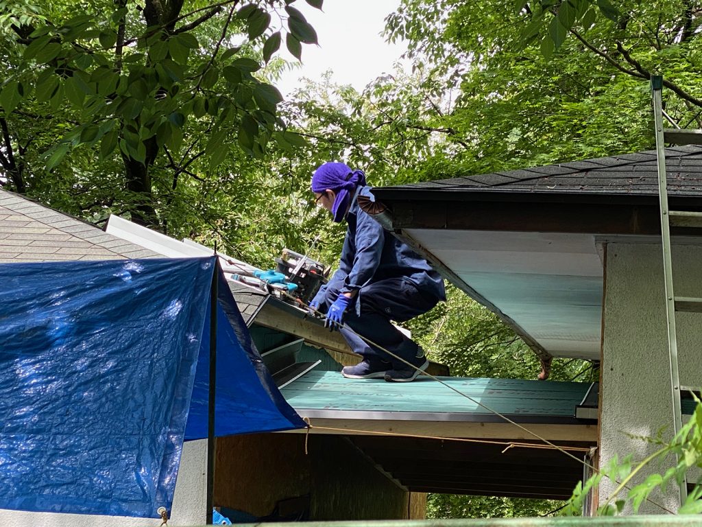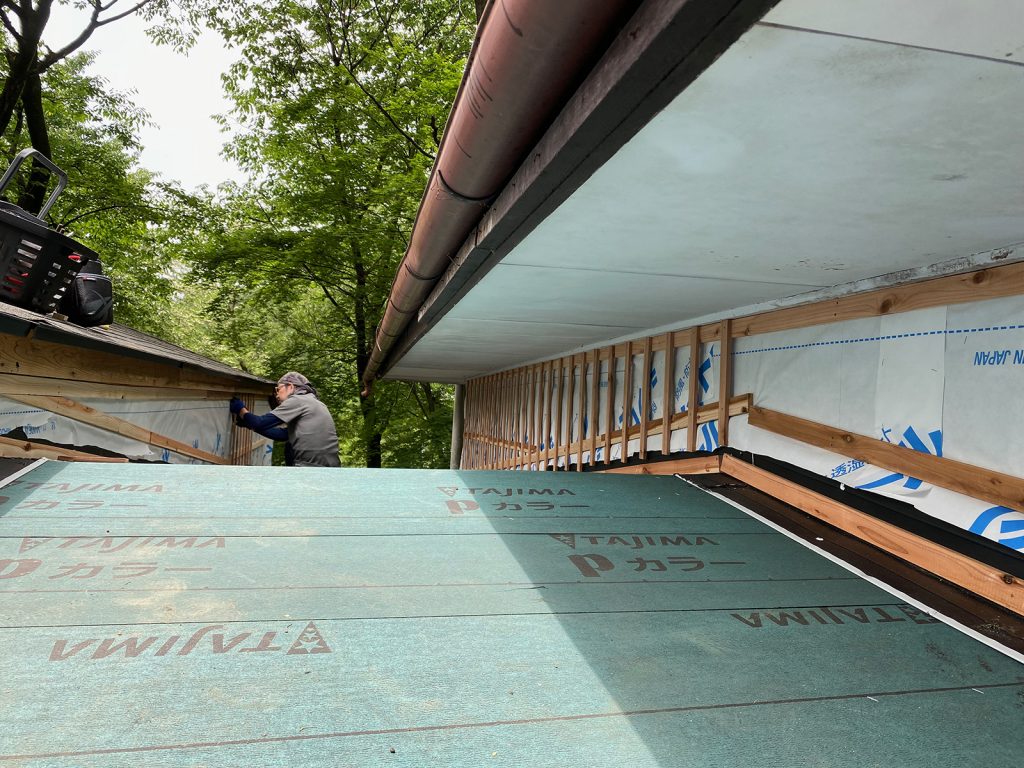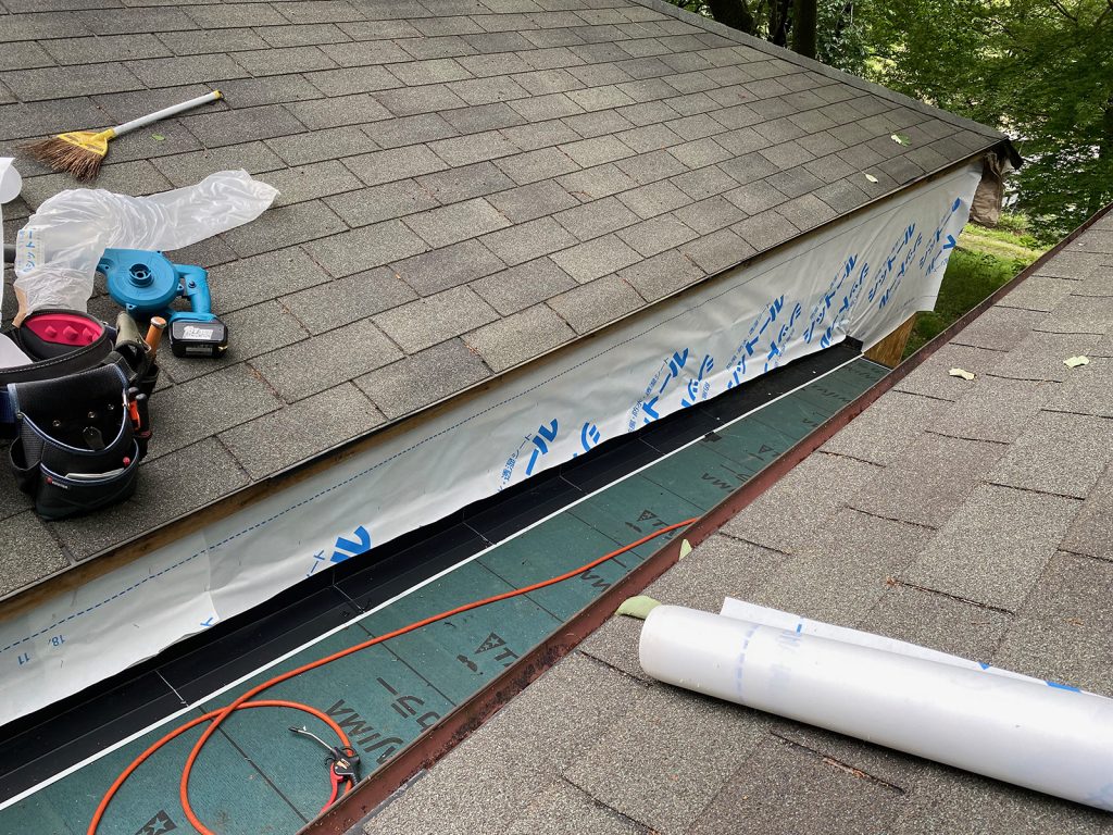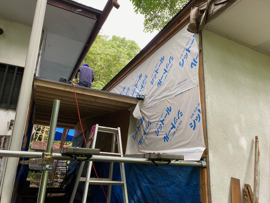 防水シートを貼ってたd(⌒ー⌒)/
