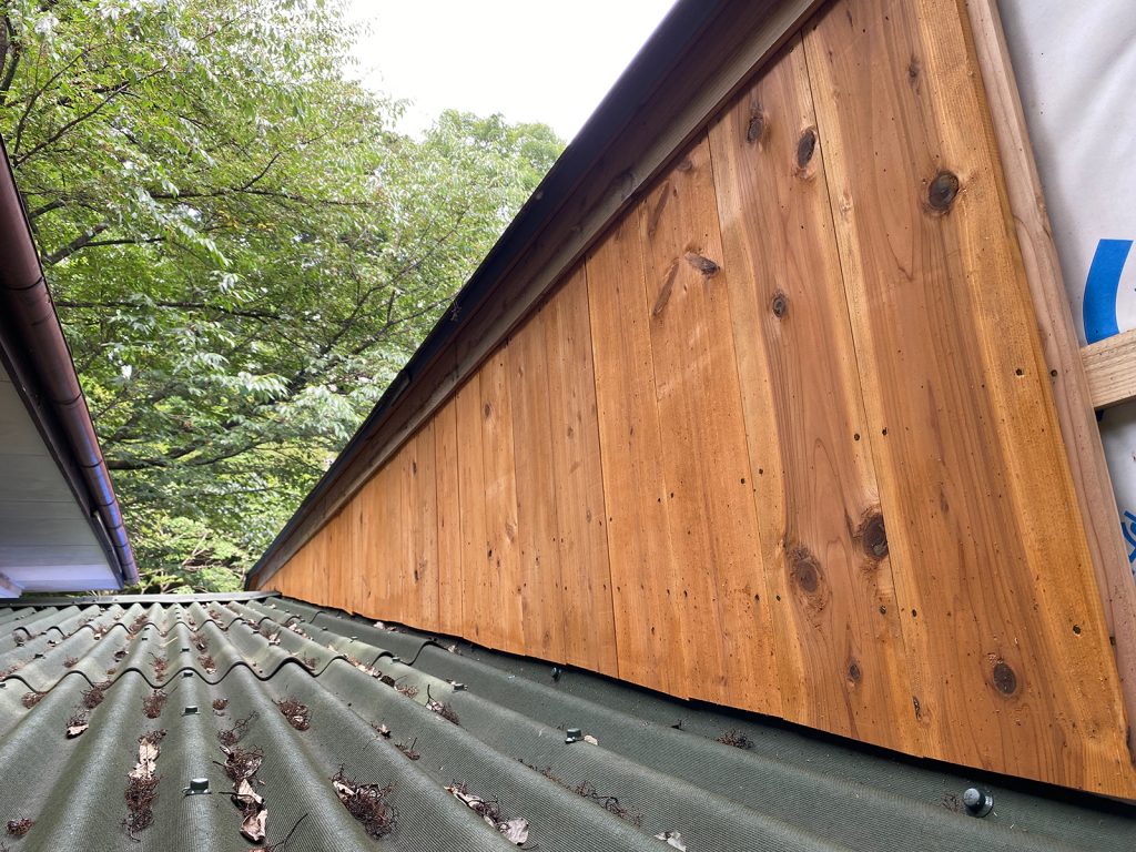 午後、まだ明るい日差しもあり、残りの壁と、(→)をやってます//。