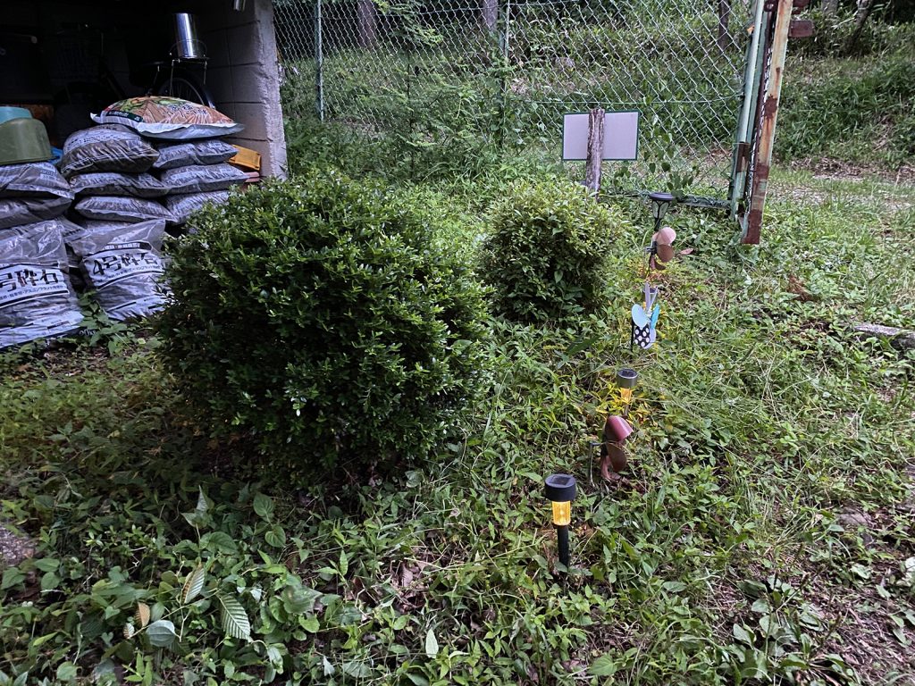雑草も伸び茂ってるけど、とりあえず、入口付近だけ、軽く刈り、,,