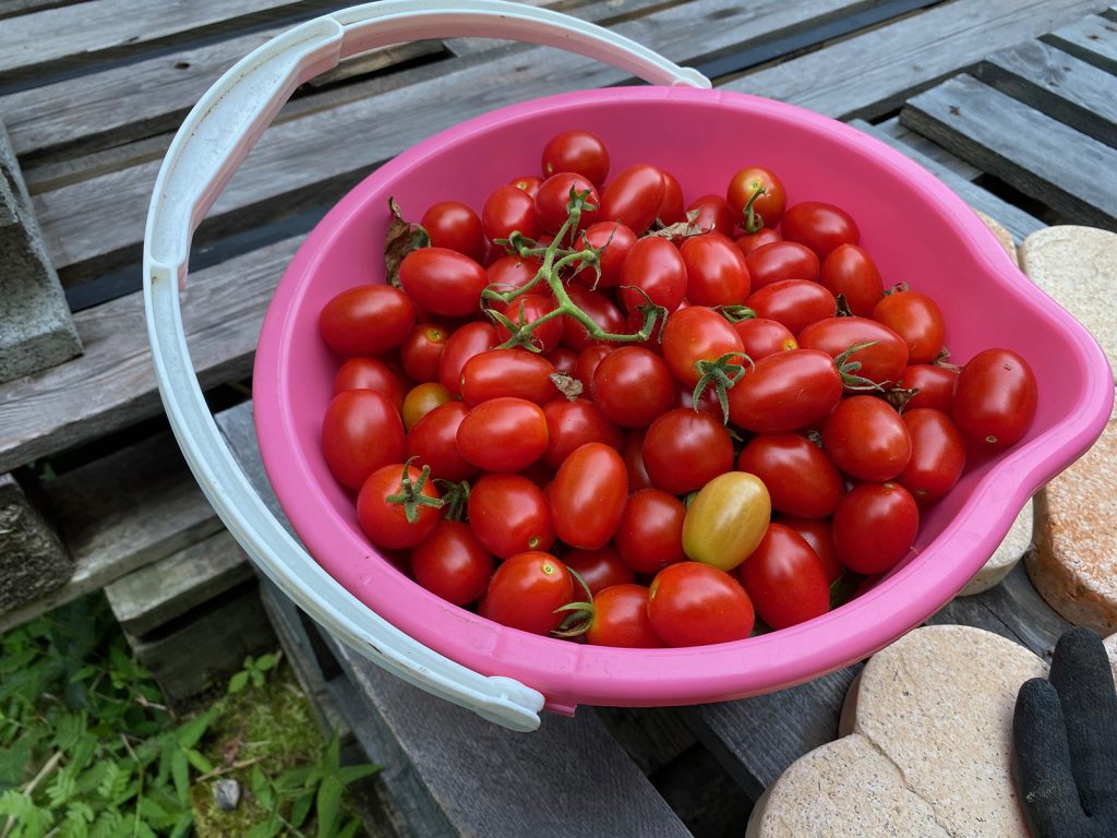 uri トマトが数珠哉、、バケツ1.2杯分あったよ〜〜(0^-^0)