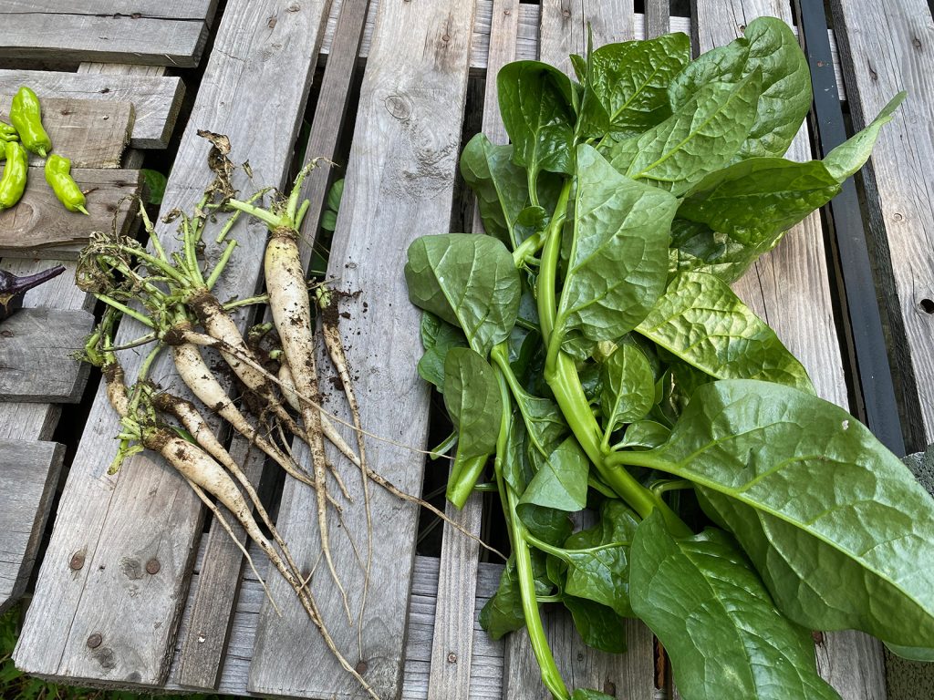 時期的に大根は__、無理そうで掘り起こし、つるむらさきは、伸び切ったところだけを。。