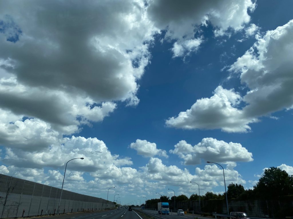 空が高くも感じるし、まだ残暑が続く感もある空、、
