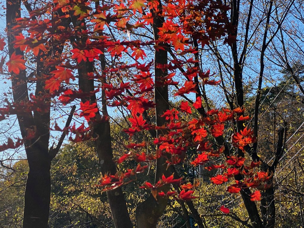 強風であちこちの柵も倒れ込んで、貼り直して__、キレイな紅葉o(^∇^)o