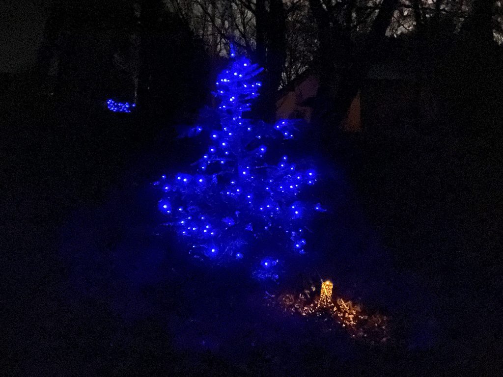 下のコーナに植えたモミの木、、なんとか枯れることなく、飾り付けしてみたら、