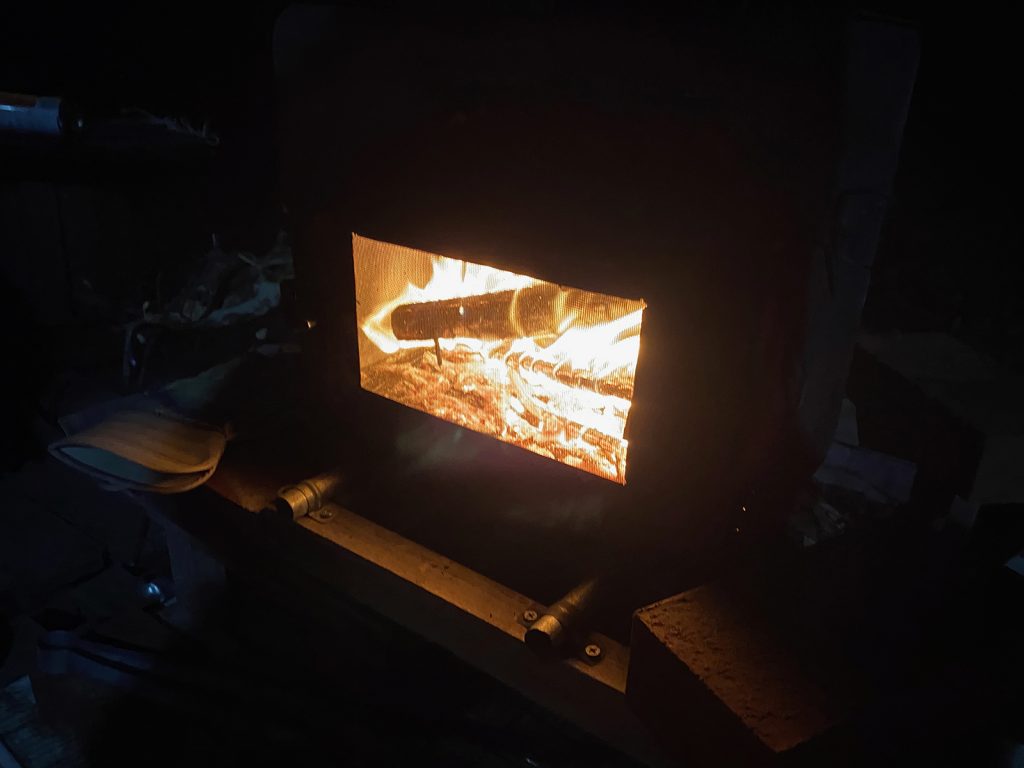 定番のクリスマス飾りをバックに、デッキにはすでにストーブ、、