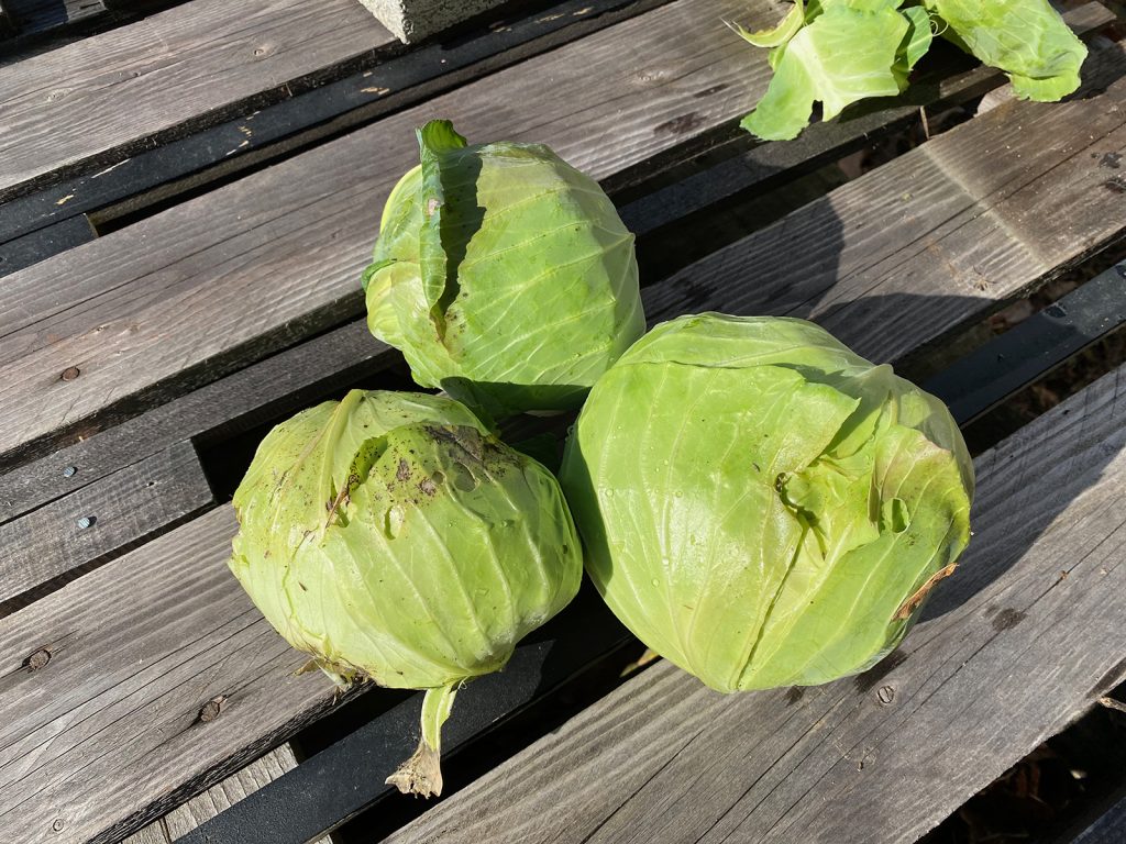 霜が降りる前に3個だけ収穫〜〜〜初キャベツ(≧∀≦)♪ちょ〜小玉だけどね(^ ^;;)