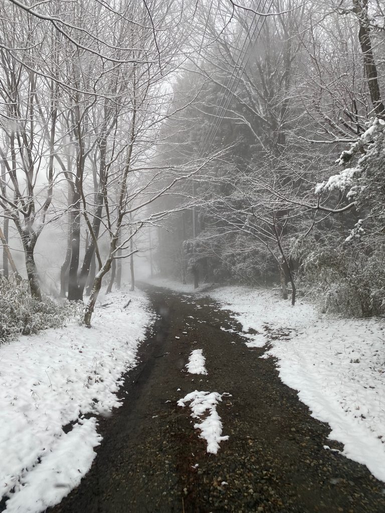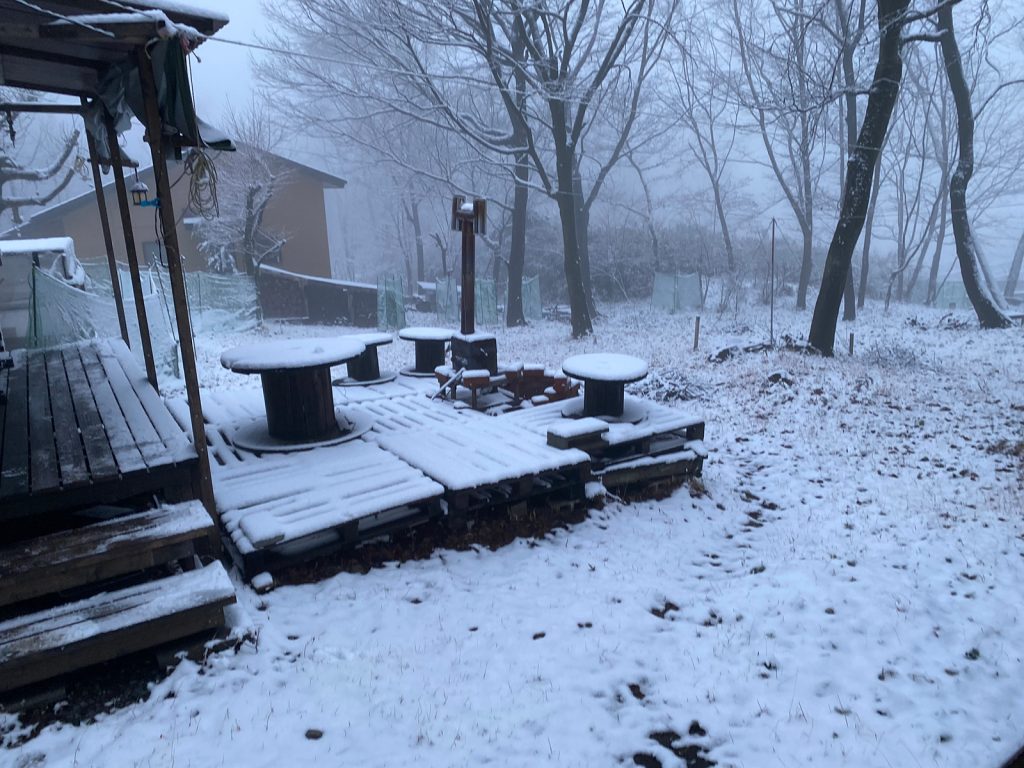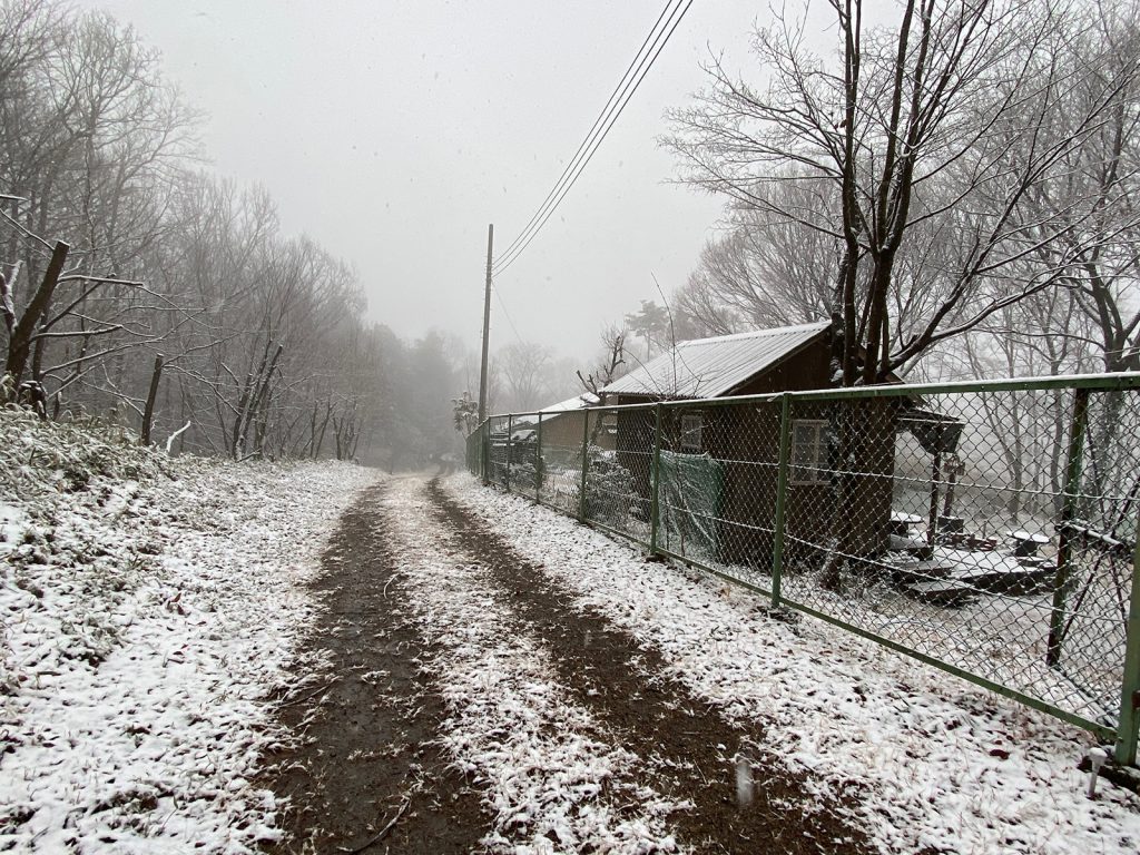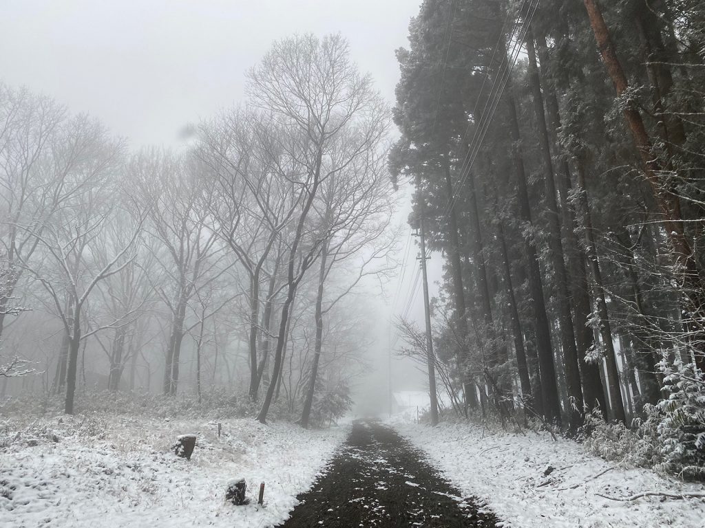 戻ってきても霧晴れず、暖冬なはずなのに、今シーズン、3度目の雪、、、