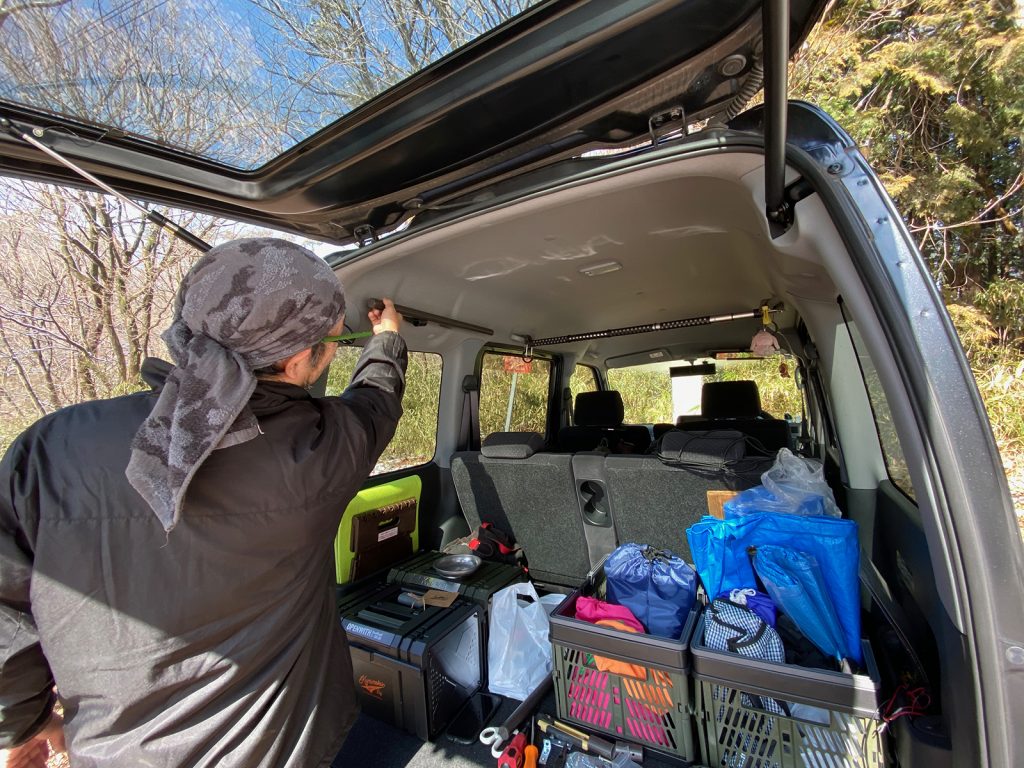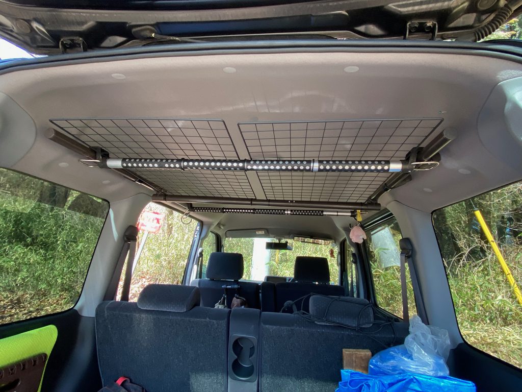 katsuも、次の段階へも、ちょっとね、、、、で、車の備品付けや、天井部分の加工です。。