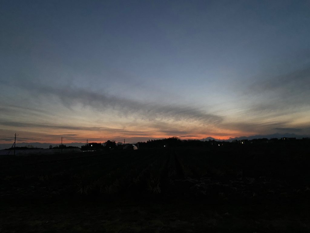 山側、真っ暗で、また、夜、荒れそうな気配。。