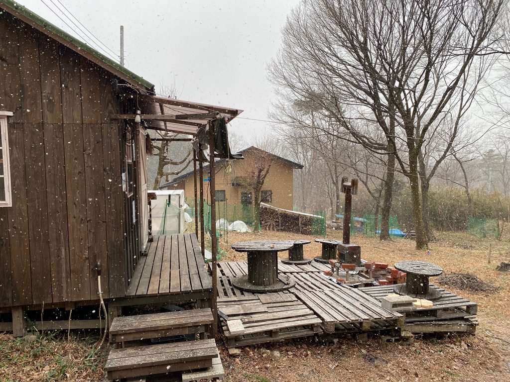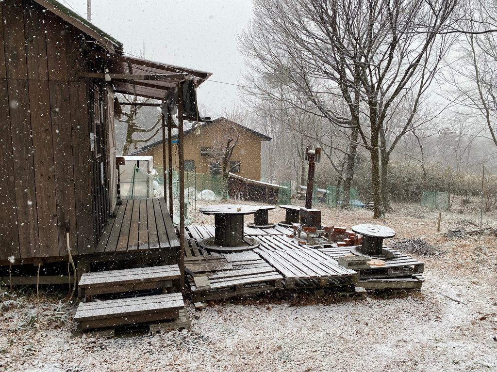 下界も大粒の雪が降ったり止んだり、あちこち回って戻り、