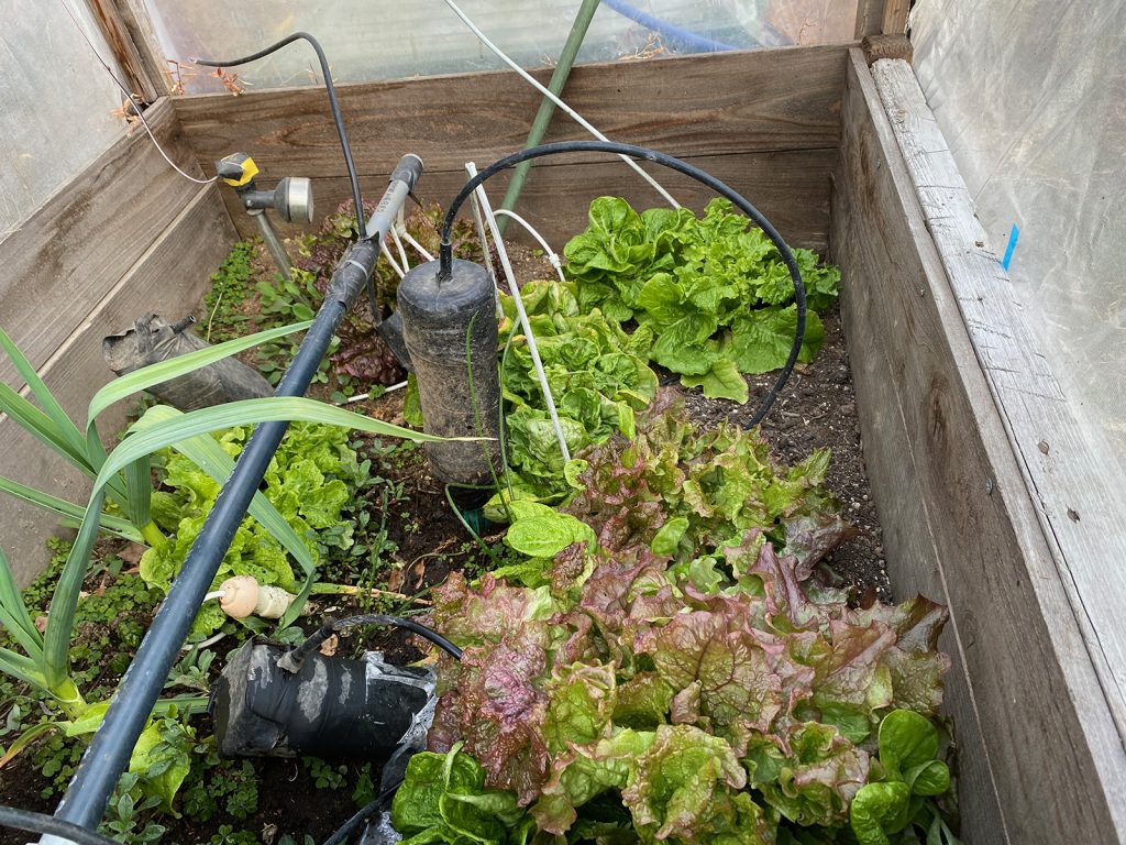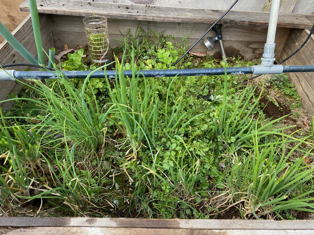 奥のセリがかなり広がっていて、手前の小ネギも、十分な成長です(^▽^;)