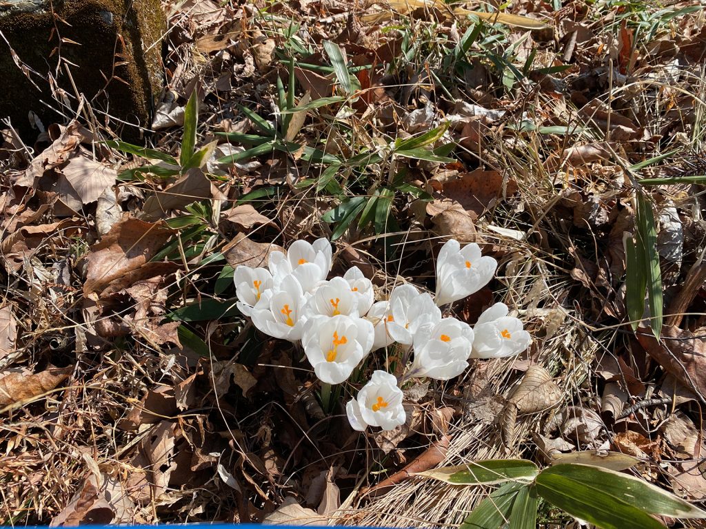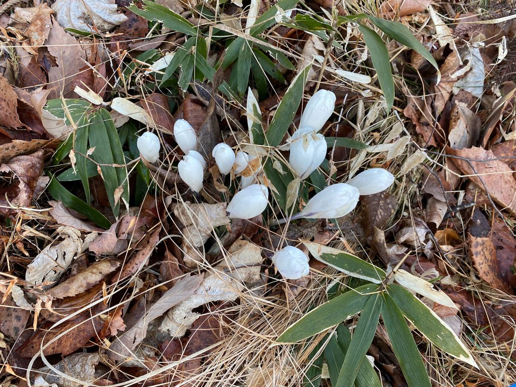 去年、まとめて植えた白のクロッカス、出てきてくれたぁ〜y(^ー^)y