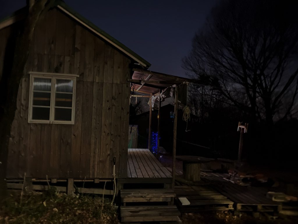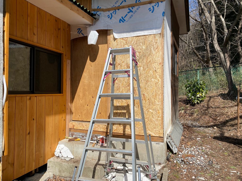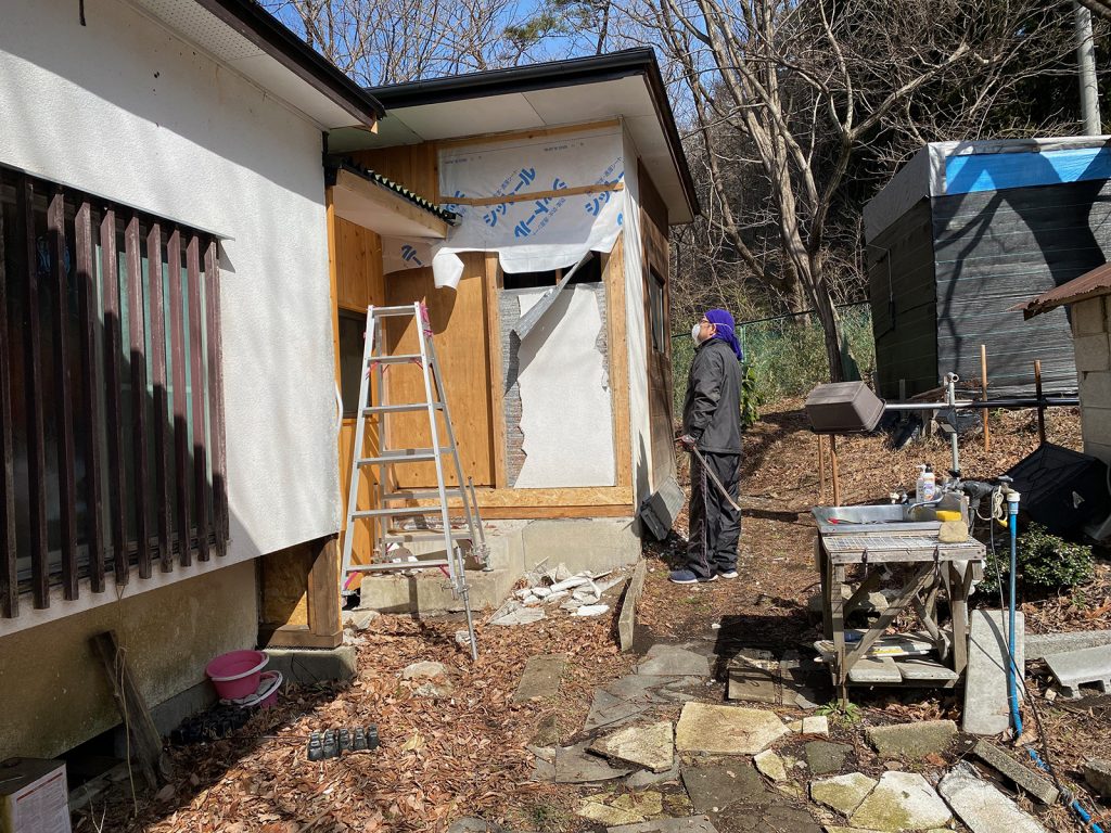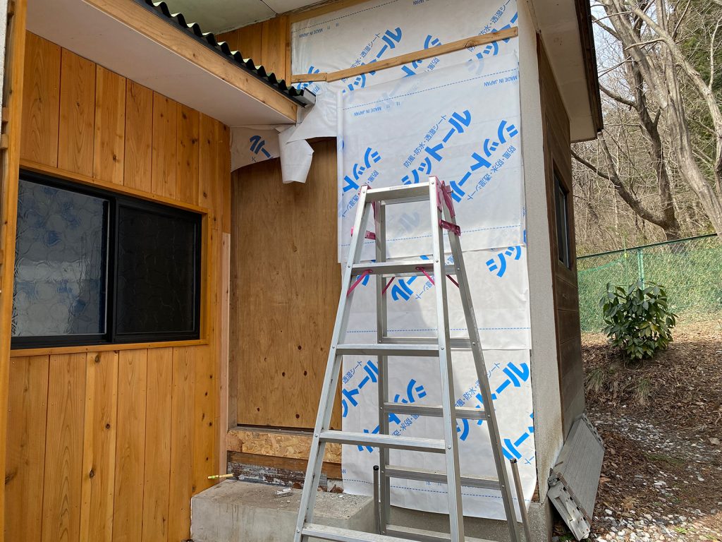 暖かいこともあり、いきなり、勝手口になる壁を壊し始めた、、。