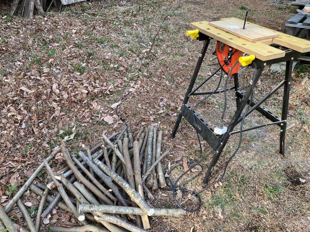 で、杭打ち用に良い太さの枝を同じ長さにカット。。<明日、使う予定(^ω^;;)>