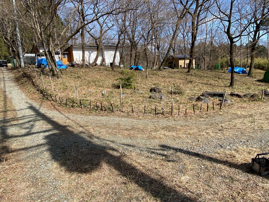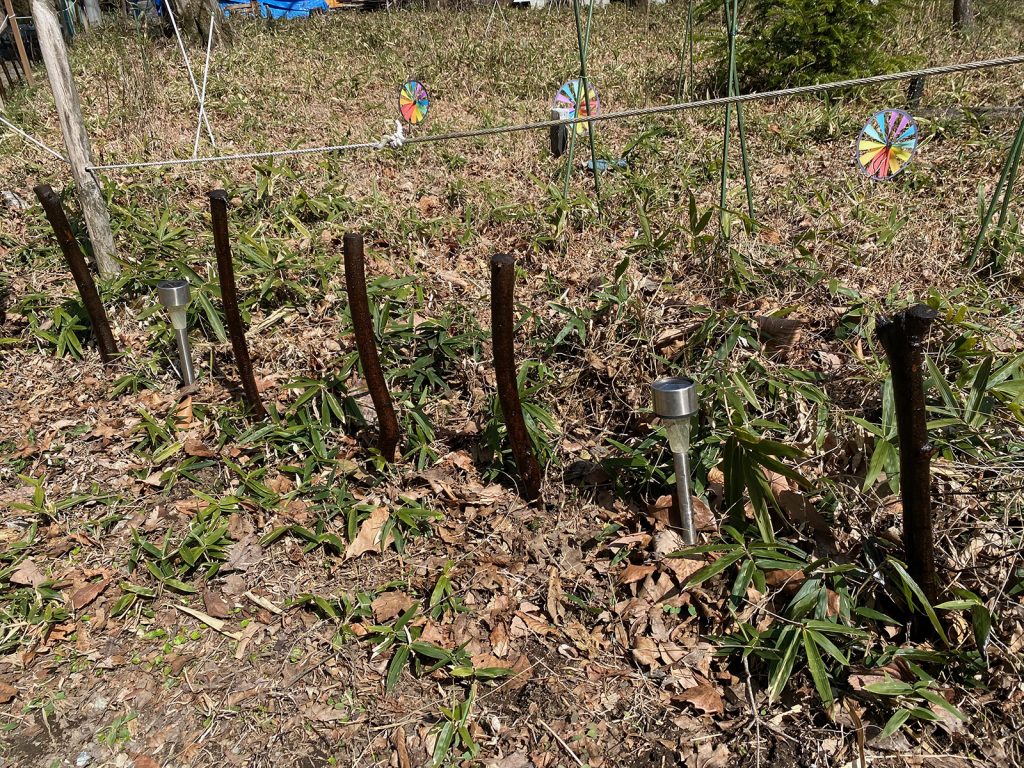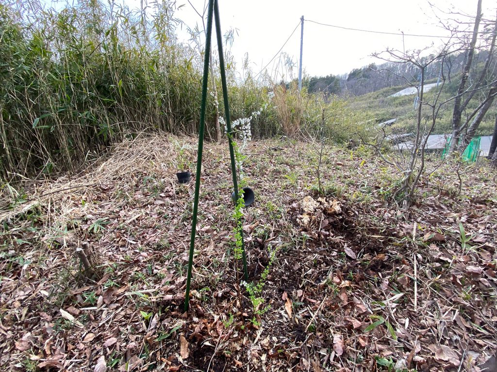そんでもって、昨日切った枝は杭代わりに//。