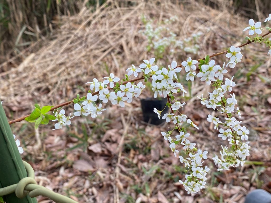 ついでに大きく広がってくれ〜〜〜とユキヤナギ(*∩ω∩)<見づらい…>