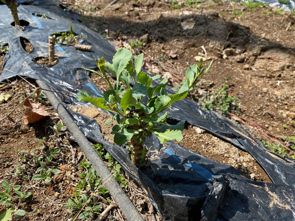マジか・・;; キャベツの収穫後の茎から、新葉が出てるよぉ、、育つのか??