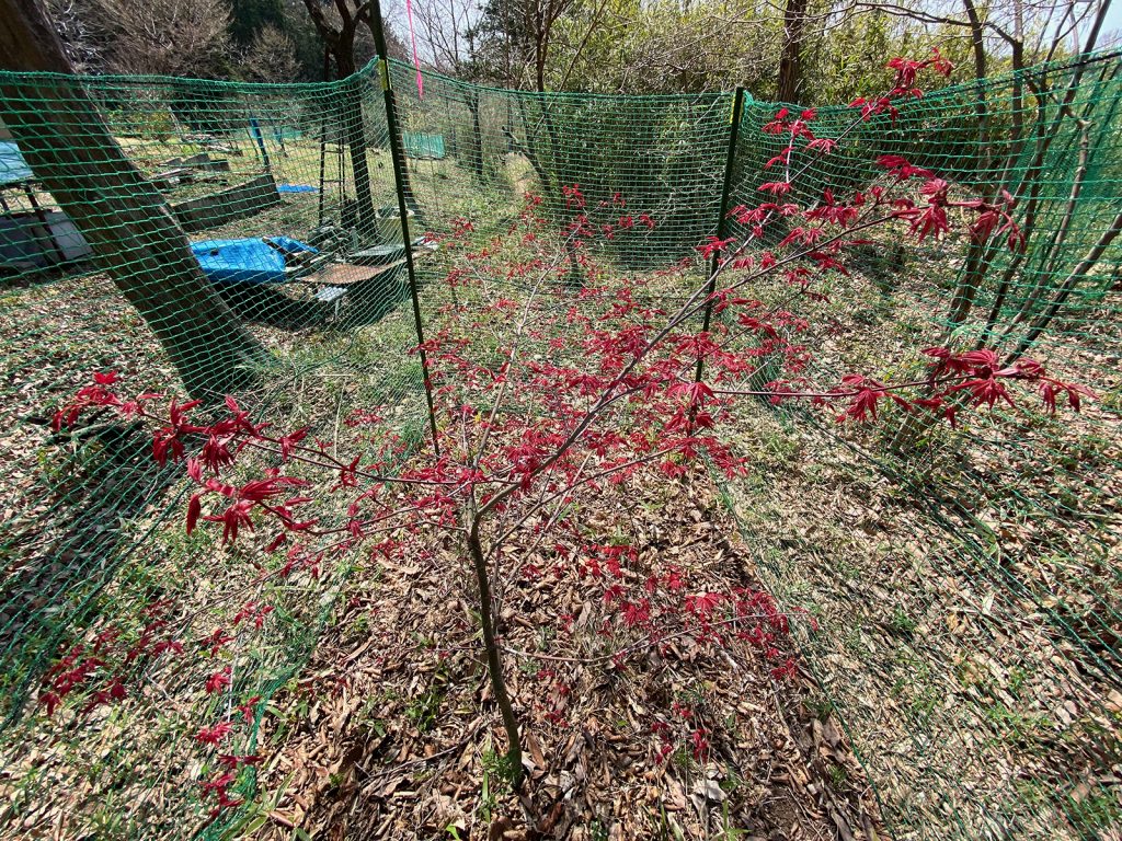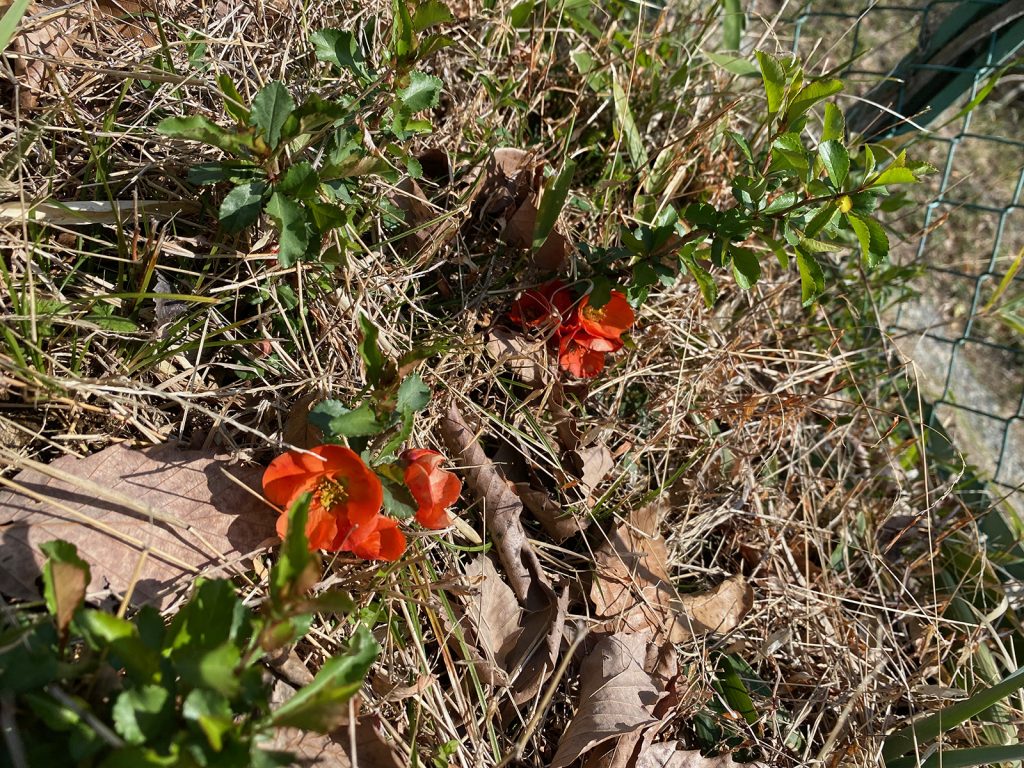 木瓜(ぼけ)というらしい、秋には黄色の実がなるとか、観察してみよーと(^ω^ゞ