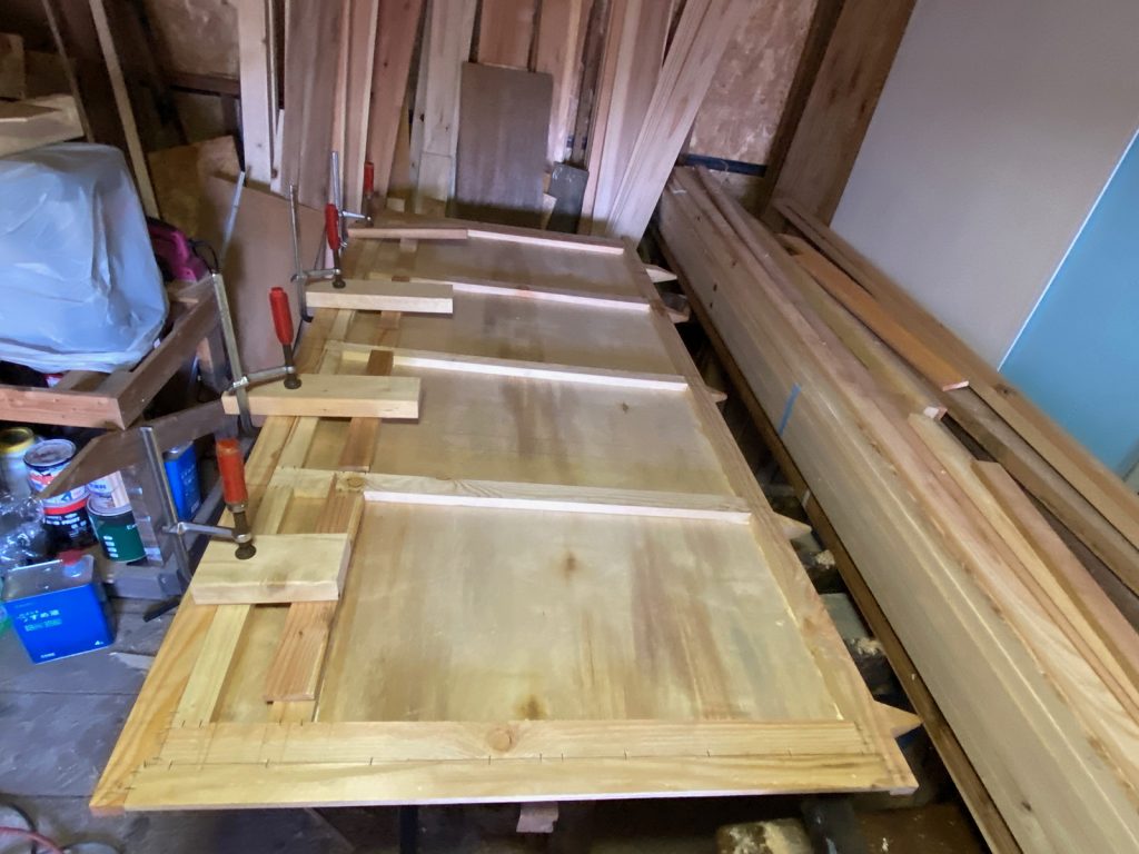 katsuは、朝からずーっと、勝手口のドア作り//。何枚重ねなのか、、、、・・??