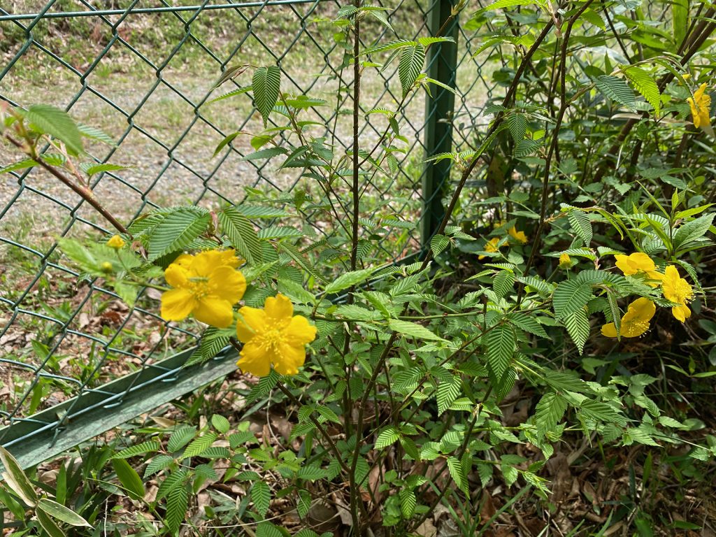 初めて咲いた??、この葉っぱは意外に多いんだけど、「ヤマブキ」というらしい,,