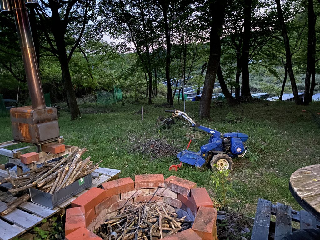 今日の作業終えて、再度、耕運機、トライ!!<いや、スンともしない..>