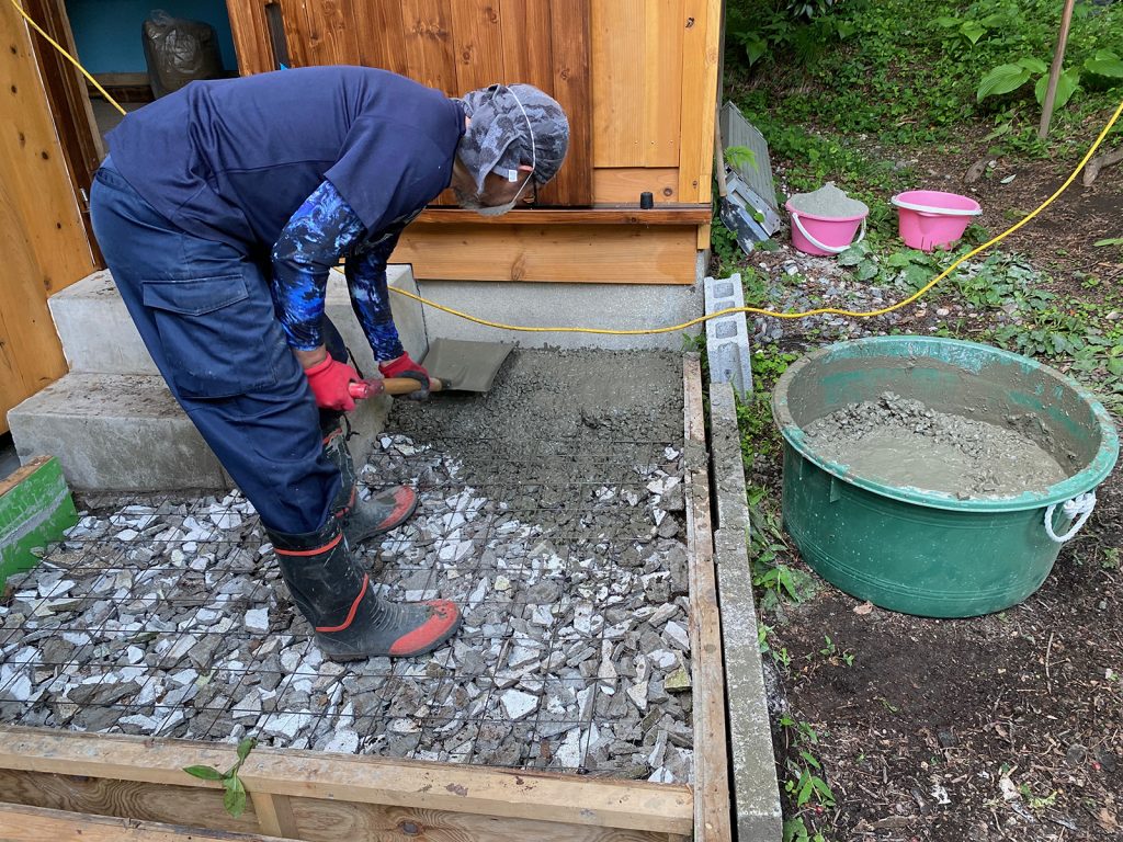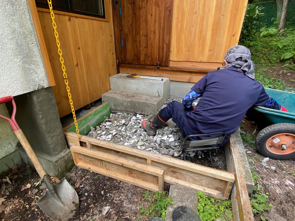 で___、またまた、廃材を砕いて、コンクリを流す準備(・∀・)ゞ