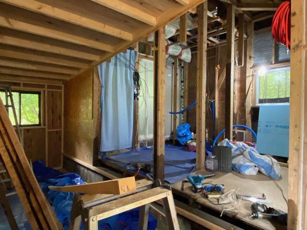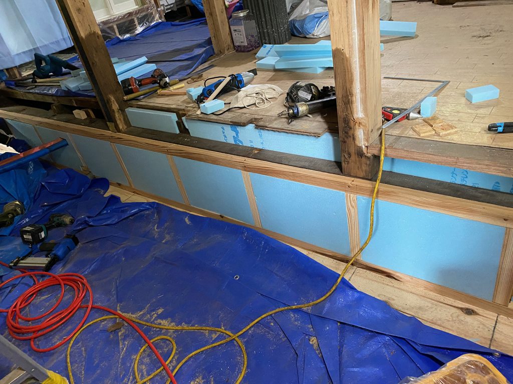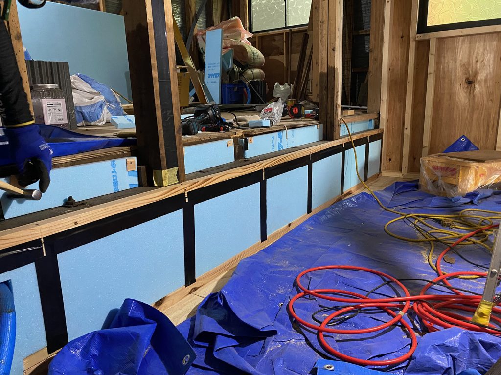 草刈りの一区切りしたところで、細かい箇所のスタイロ張りと気密テープで念入りにね//
