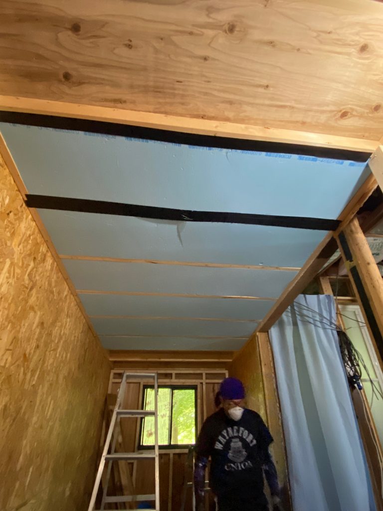 天井部分、スタイロをはめるのも、一苦労┐( ̄ヘ ̄)┌